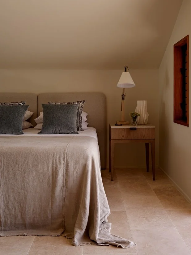 Originally designed by renowned architect Chris Beckingham, the visionary behind Qualia, this luxury waterfront holiday home has been enhanced with thoughtful new additions by Mr Waller. Situated on Hamilton Island and backing onto the scenic Passage Peak National Park, the residence combines architectural refinement with natural surroundings. Key updates include the addition of an upper level to the southern pavilion, creating a guest apartment that offers privacy and panoramic views. The apartment’s living space has been extended with a Northern terrace, shaded by a sailcloth covering, and a spacious Eastern balcony to enhance the connection with the tropical environment. Inside, the open-plan bedroom and living space features bespoke joinery, including a custom robe and desk crafted in New Guinea Rosewood, a material that complements the building's architectural materials, highlighting the seamless link between interior and exterior design. The bathroom, with its striking Verde Oceania marble, adds a touch of luxury, with raised dormer roofline to capture sweeping vistas of the resort and beyond. This redesign ensures the home’s seamless integration with its natural landscape while providing an elevated experience of island living.