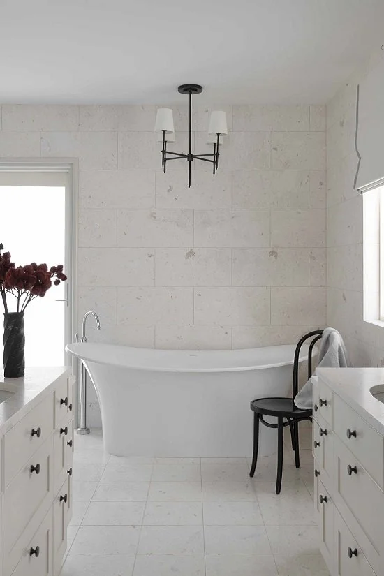 This 20-year-old, four-bedroom waterfront property needed a total makeover. Waller provided “the white glove service”, managing all design, construction works, furniture removals, house setup and styling, so all the owners just had to turn their key in the door. Walls were removed in the kitchen and laundry to create a butler’s pantry. In the master suite, he realigned walls to create a new bathroom with vanities framing a freestanding bath and a larger walk-in robe. A wine cellar was created where the study had been. He also rejigged the stairs and installed a lift in the stairwell, where Waller also fitted a new steel balustrade for a lighter feel. Aesthetically, the owners wanted a classic, timeless look, which Waller delivered with marble and limestone and other neutral finishes overlaid with blue accents. Attention to detail is apparent in the finishes and fittings, including Italian fabrics, Australian wallpapers, bronze lighting & hardware and of course the joinery, a Waller signature.
